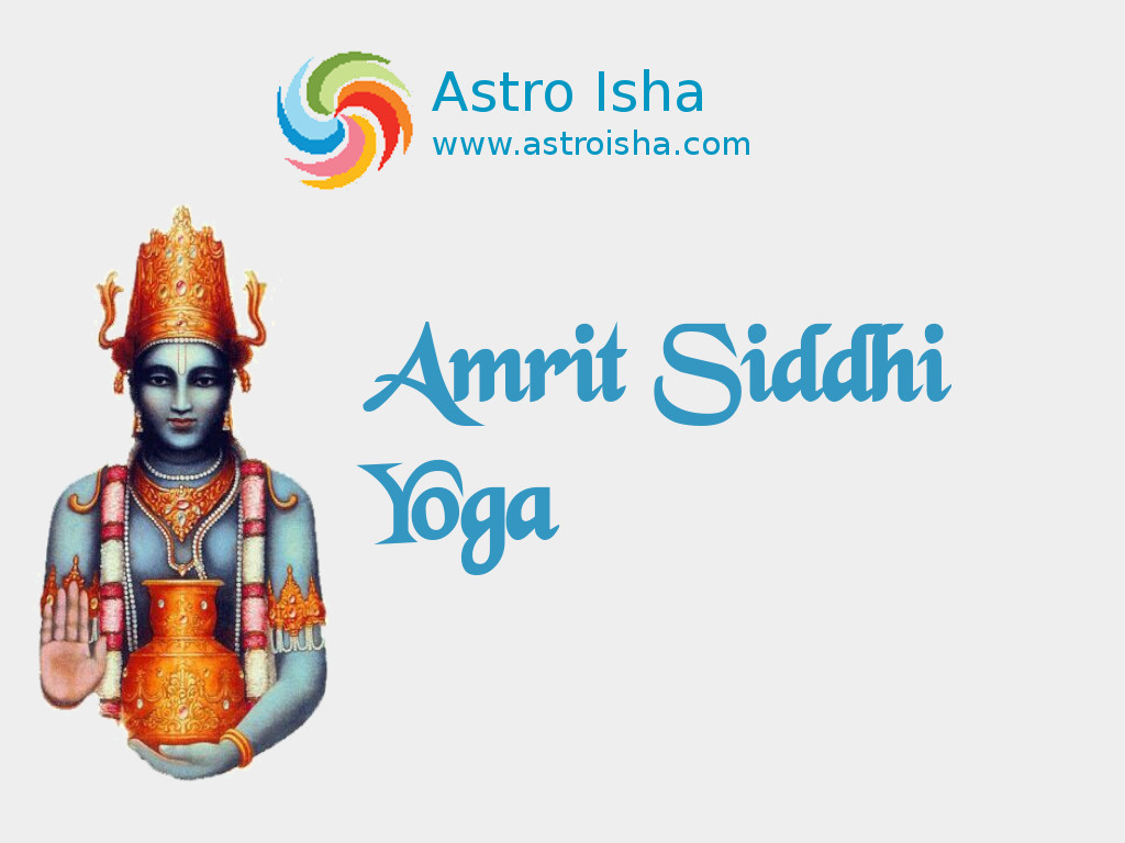 Amrit means nectar/elixir. Vedic folklore suggests that devas drank amrit to become immortal. Siddhi means achieving or accomplishment. Amrit Siddhi Yoga is an auspicious yoga which grants amrit(immortality) and siddhi(success) to an individual in whatever he/she starts when this auspicious yoga is formed in the sky.