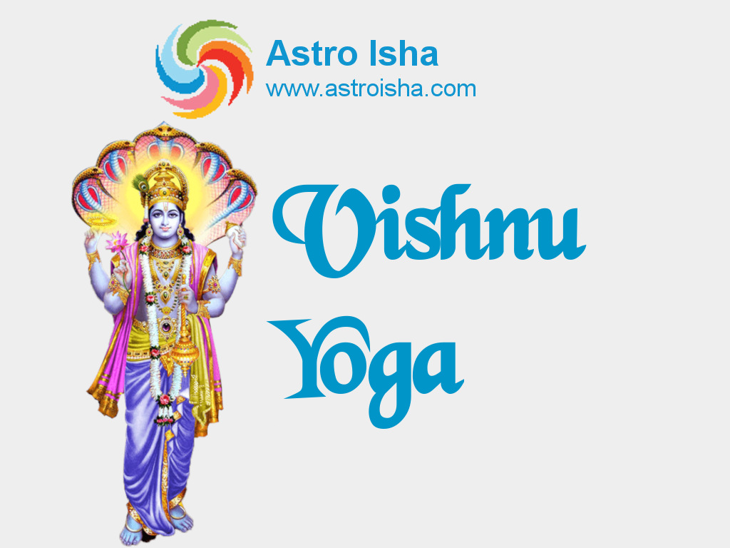 Vishnu Yoga is one of the yogas mentioned in B.V. Raman's book 300 Important Combination. Vishnu is part of tridev(holy trinity) in Hinduism with Brahma the creator, Vishnu the preserver and Shiva the destroyer.